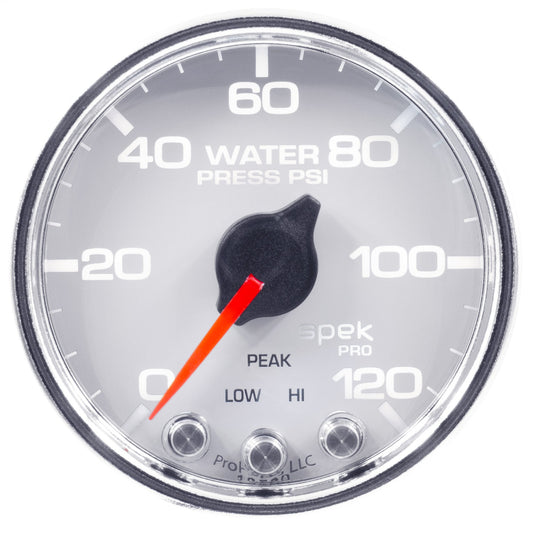 Autometer 2-1/16 in. WATER PRESSURE, 0-120 PSI, SPEK-PRO, WHITE/CHROME