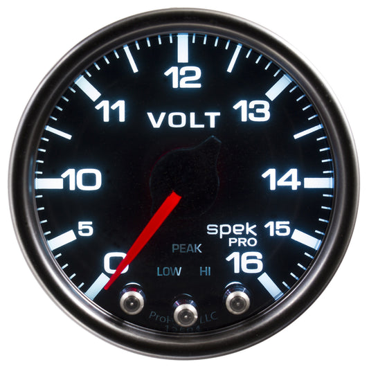 Autometer 2-1/16 in. VOLTMETER, 0-16V, SPEK-PRO, BLACK/BLACK