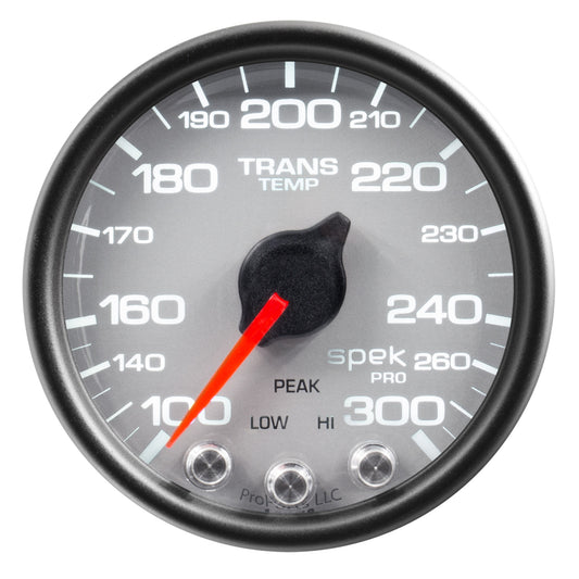 Autometer 2-1/16 in. TRANSMISSION TEMPERATURE, 100-300 Fahrenheit, SPEK-PRO, SILVER/BLACK